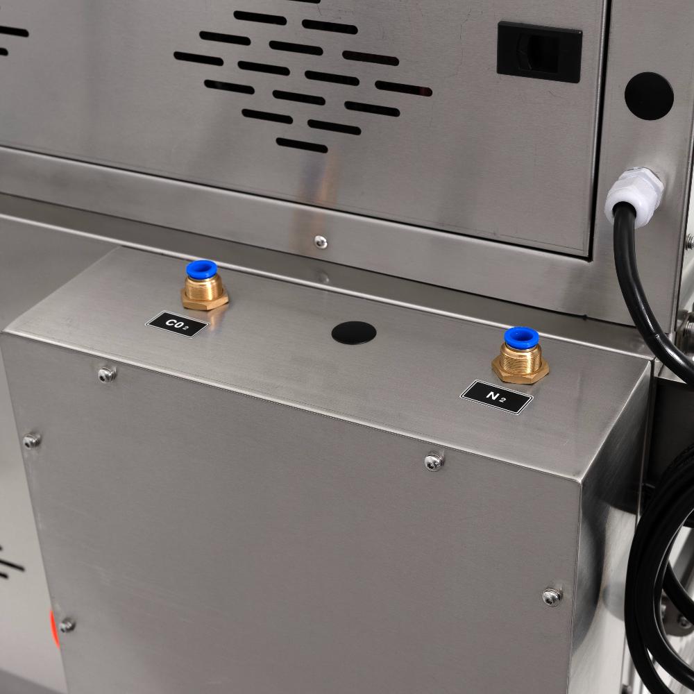 - Технология газозамещения. Замена воздуха инертным газом (азотом или смесью) значительно замедляет окисление, подавляет рост бактерий и продлевает срок хранения продуктов, сохраняя их свежесть и товарный вид.